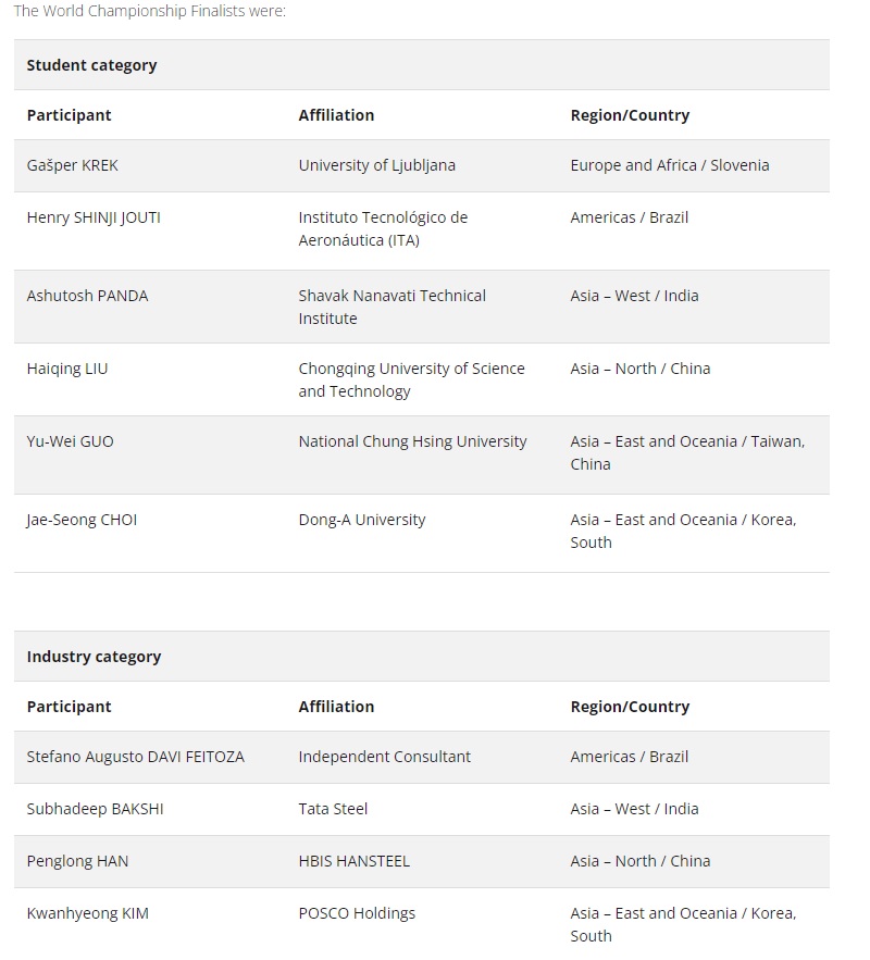 Penglong HAN, the World Champion in the industry category for 2023, said, “I’m very proud and happy to have won the World Championship! Taking part in this competition has been a valuable learning experience, challenging us to think creatively and explore new approaches to steelmaking. We believe that continuous learning and innovation are key to driving progress in the industry and we look forward to applying what we have learnt to our work in the future”.